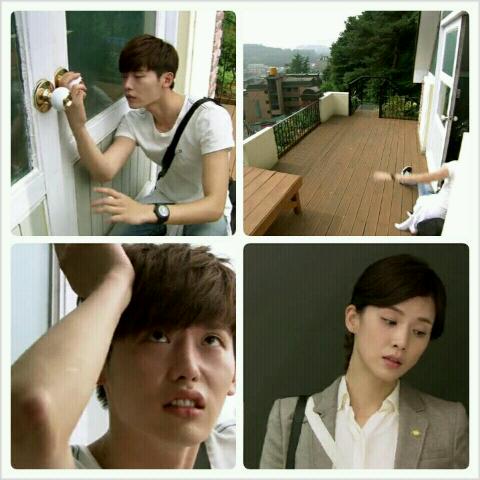 Pagi hari. Soo-ha sedang memperbaiki lagi gagang pintu depan. Lagi di ugreg-ugreg gitu, (apa bahasa indonesianya ya?), tiba-tiba dari dalam Hye-sung membuka pintunya dan membuat Soo-ha kejedot plus kejengkang. Hehe…